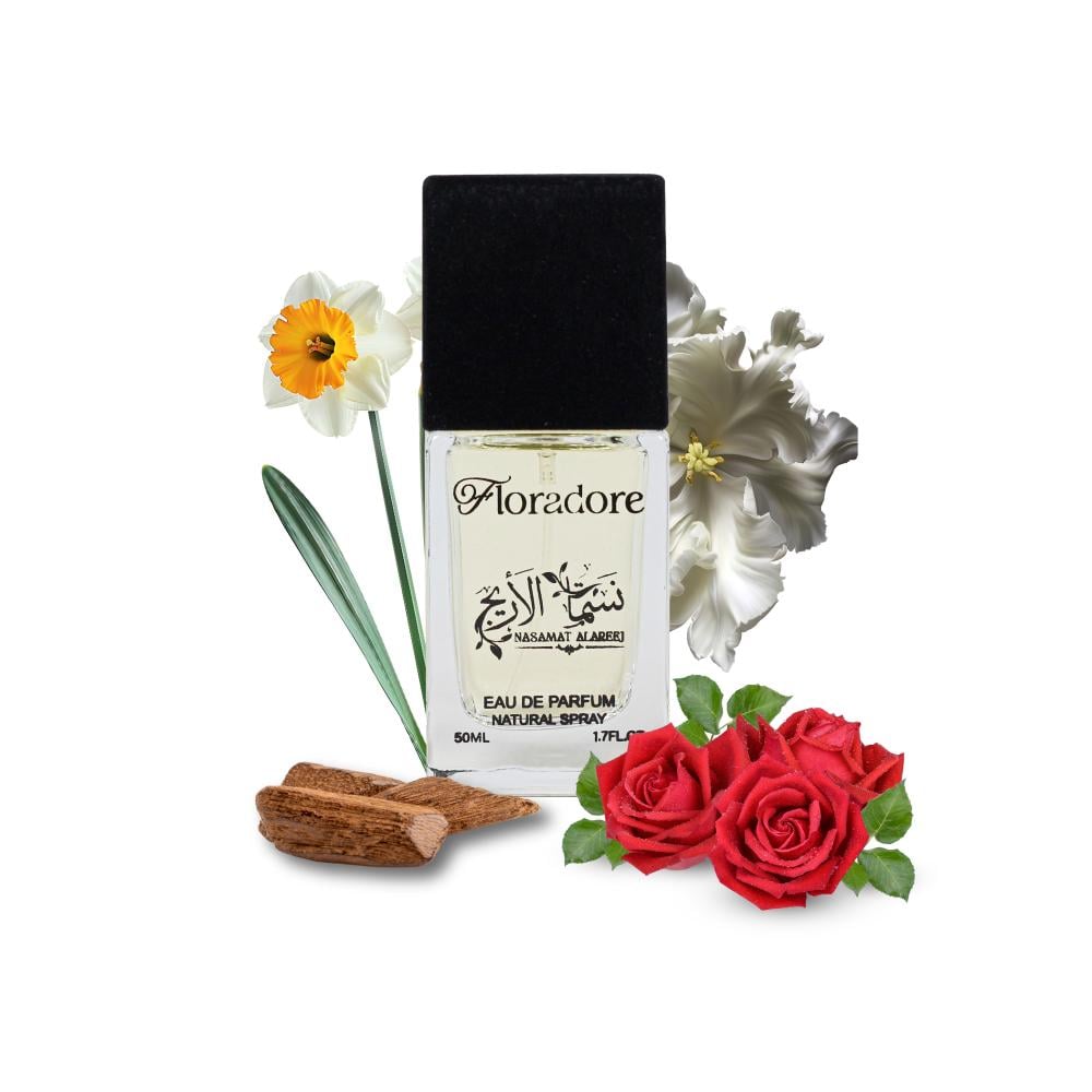 فتتاحية العطر شراب الكشمش الأسود و رائحه الماء; قلب العطر الورد, زهر بخور مريم, النرجس و ياسمين سامباك; قاعدة العطر تتكون من العود, الباتشولي, البخور و البنزوين - الجاوي.